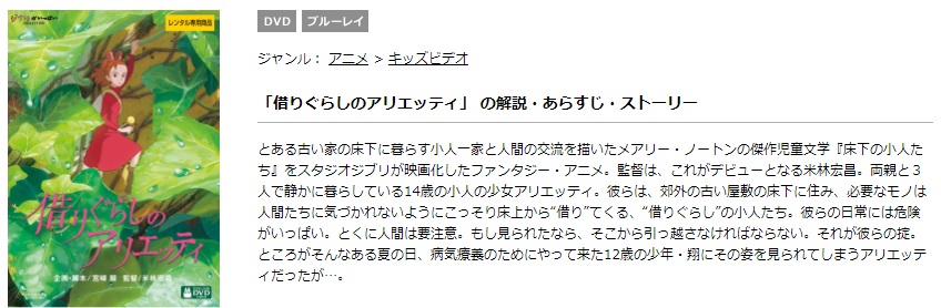 ツタヤディスカスなら映画「借りぐらしのアリエッティ」をフル視聴できます!